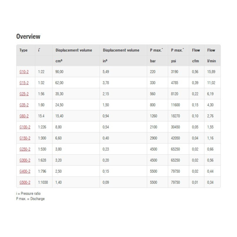 Splošne informacije:MAXIMATOR črpalke G...-2 serije so na voljo kot enostransko ali dvostransko delujoče z enojnim ali dvojnim pogonskim delom.